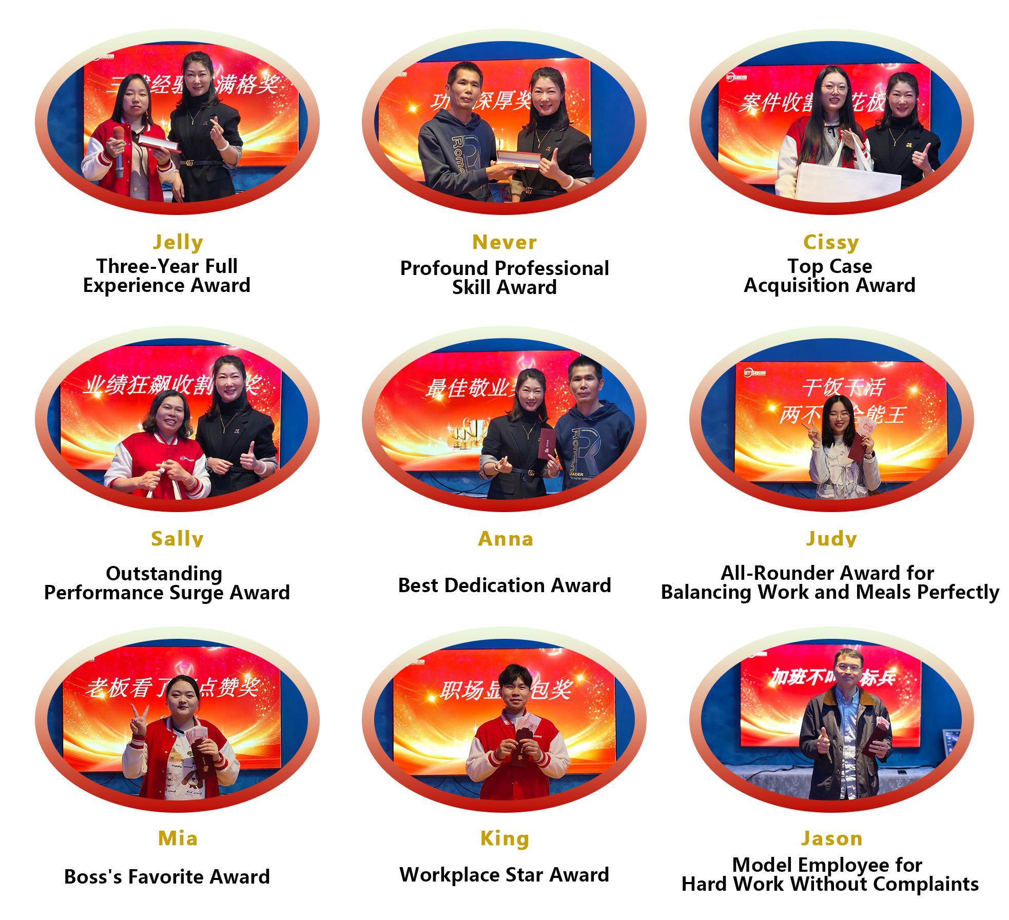 The award ceremony pushed the on-site atmosphere to the first climax. Company leader Anna and technical director Never presented honorary awards to outstanding employees. The awards included Three-Year Full Experience Award, Profound Professional Skill Award, All-Rounder Award for Balancing Work and Meals Perfectly, Best Dedication Award, Top Case Acquisition Award, Outstanding Performance Surge Award, etc. Each award name was both funny and appropriate, accurately showing the employees' work characteristics.